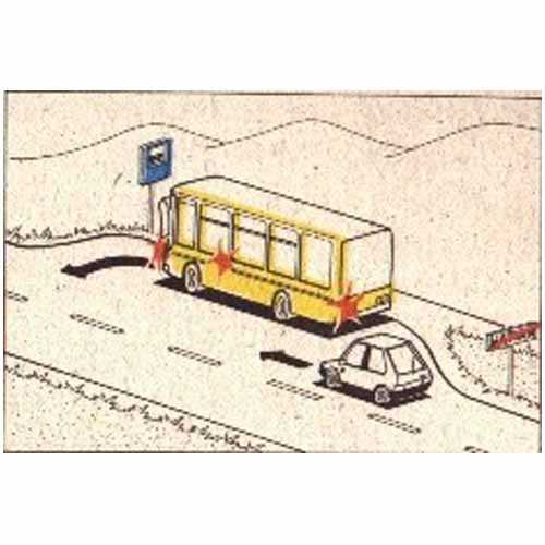 Cum trebuie să procedați dacă în situația alăturată vă aflați la volanul autoturismului, și observați că autobuzul a început să semnalizeze?
